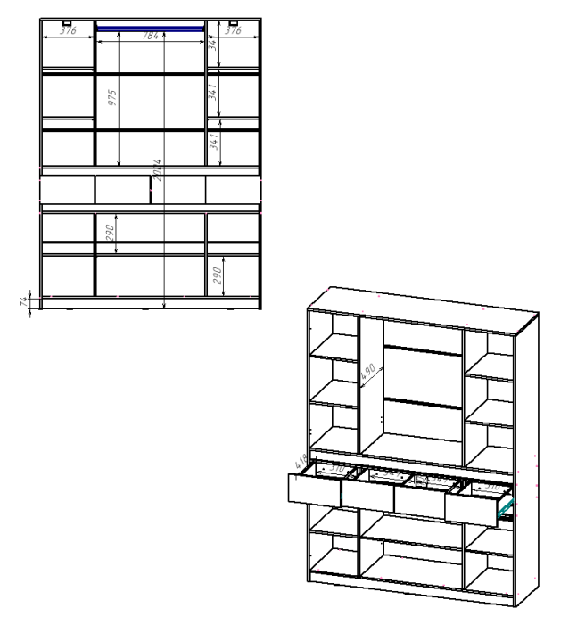 - Отделение под штангу (784 × 1055 × 490 мм) – идеально для хранения одежды.