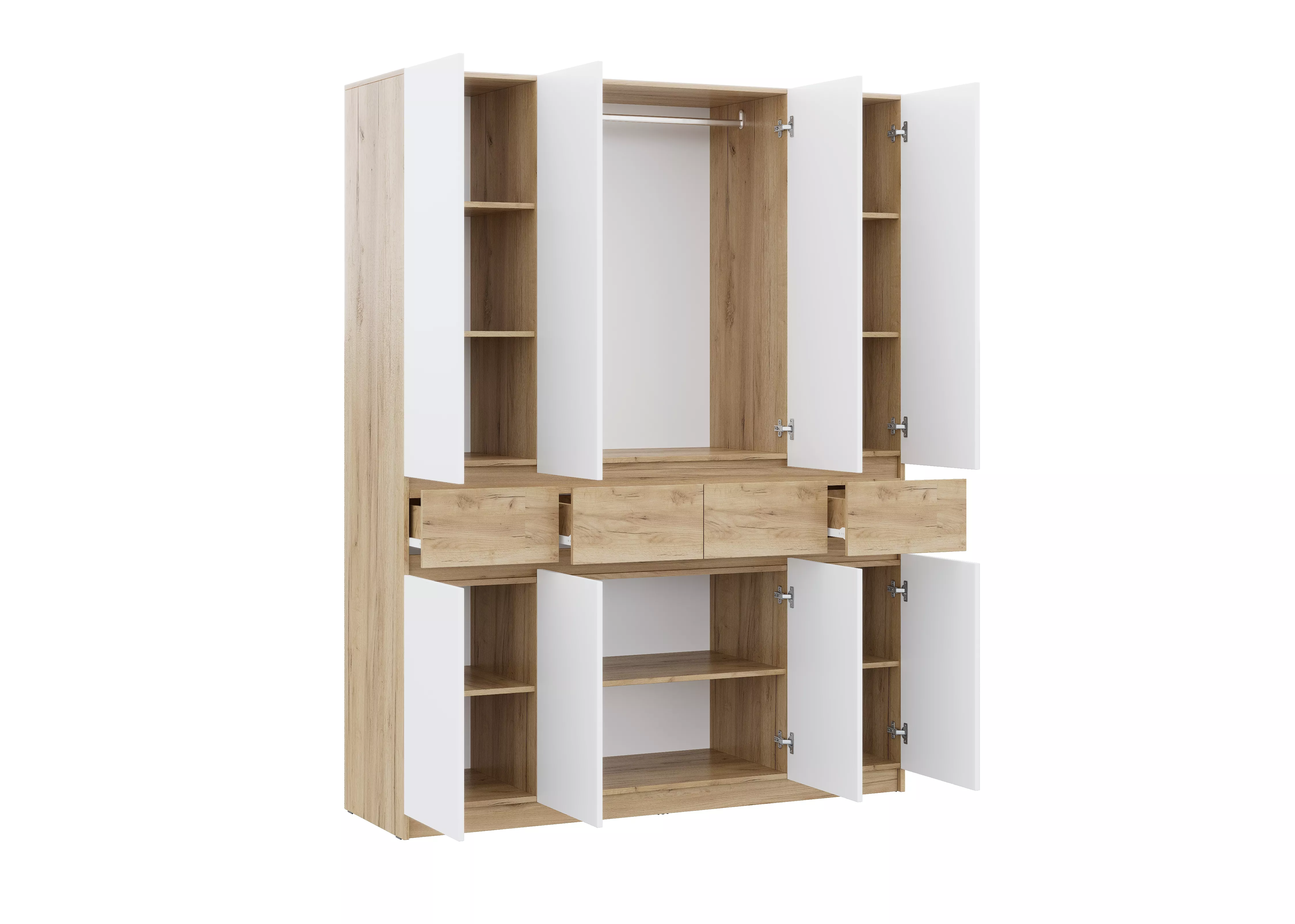 - 2 секции с полками – по 3 регулируемых ниши (376 × 341 × 490 мм) для аксессуаров, обуви или текстиля.