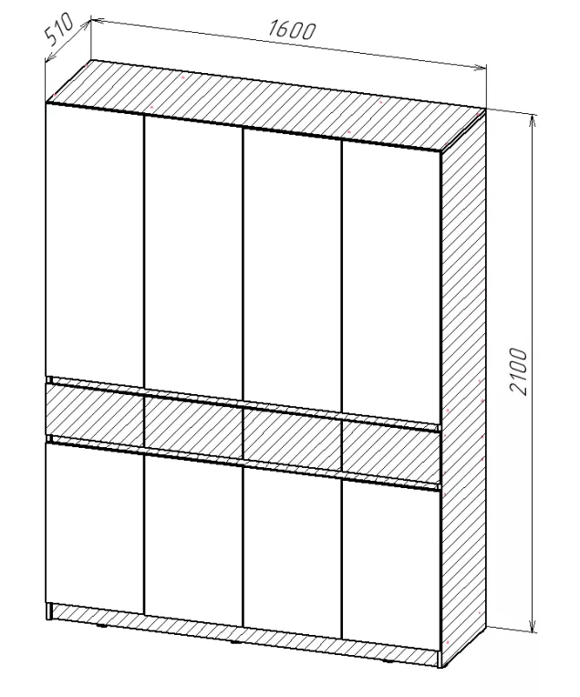 Габаритные размеры всего изделия – Д1600 х В2100 х Г510 мм