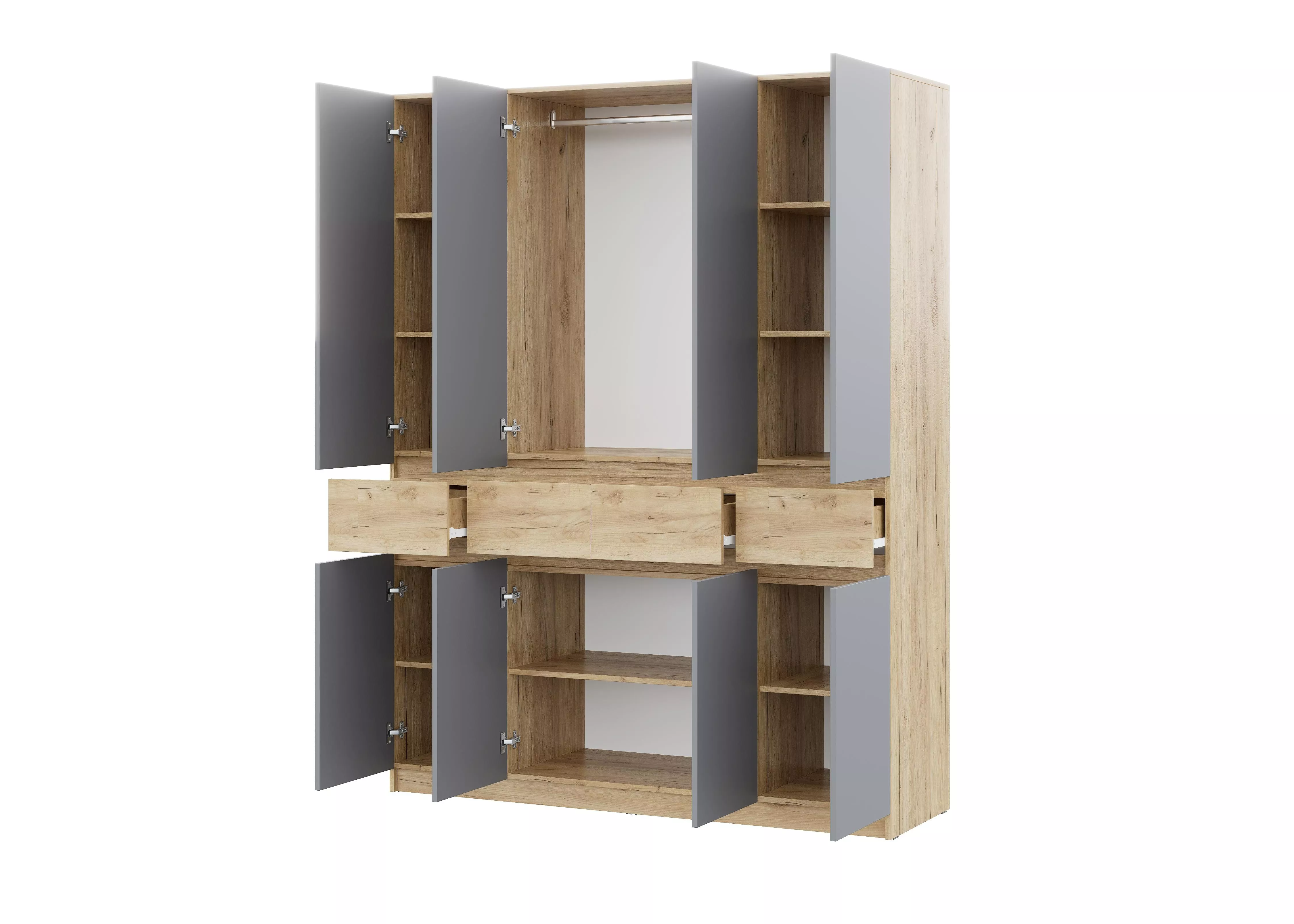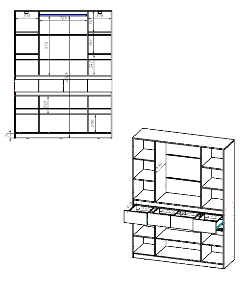 - 2 секции с полками – по 3 регулируемых ниши (376 × 341 × 490 мм) для аксессуаров, обуви или текстиля.