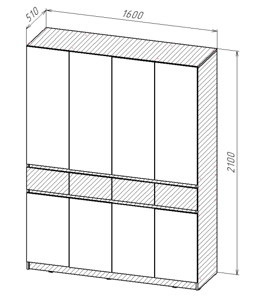 Габаритные размеры всего изделия – Д1600 х В2100 х Г510 мм