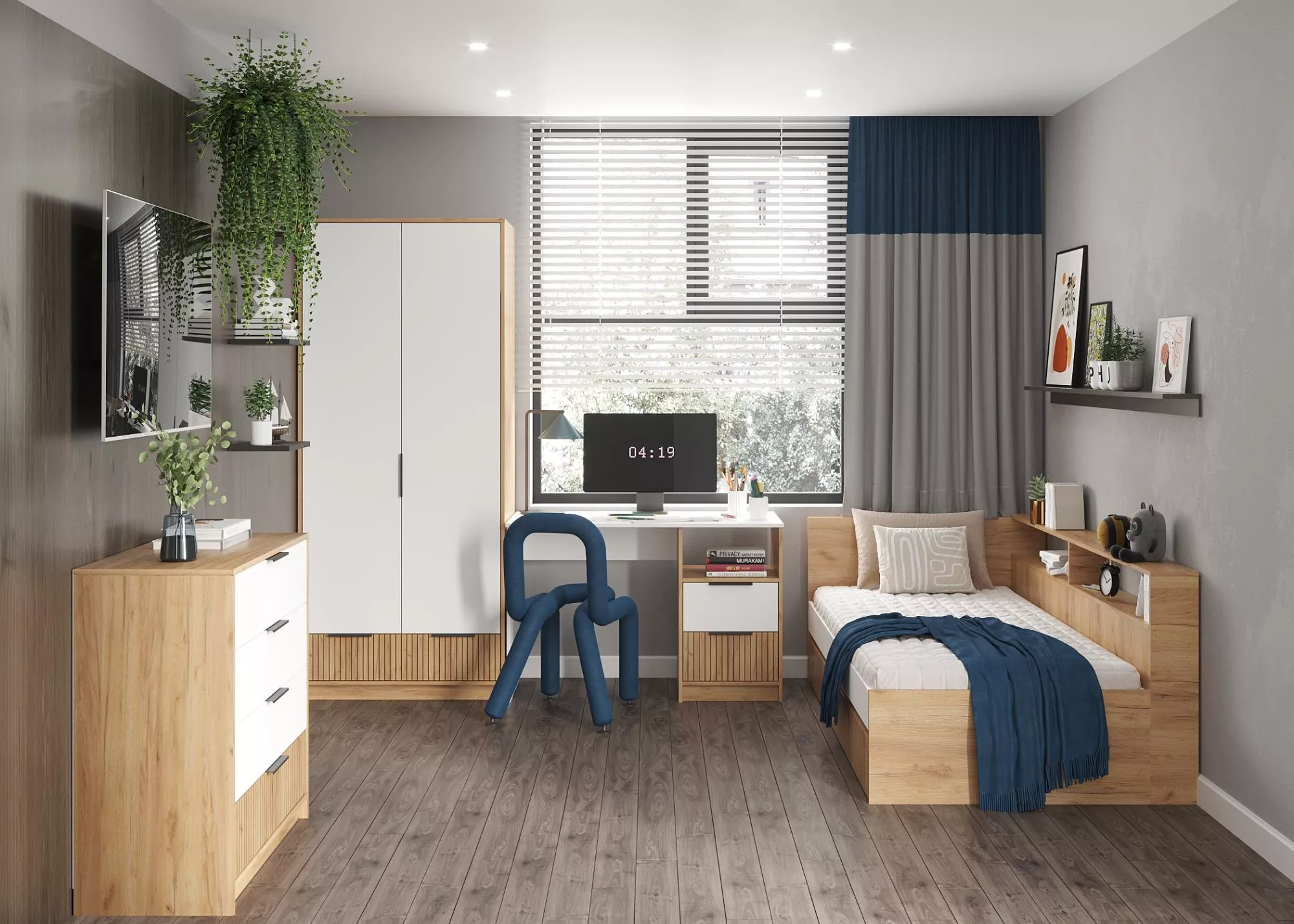 Цвет фасада: Белый (Гладкий) и фотопечать в виде вертикальной фрезеровки.