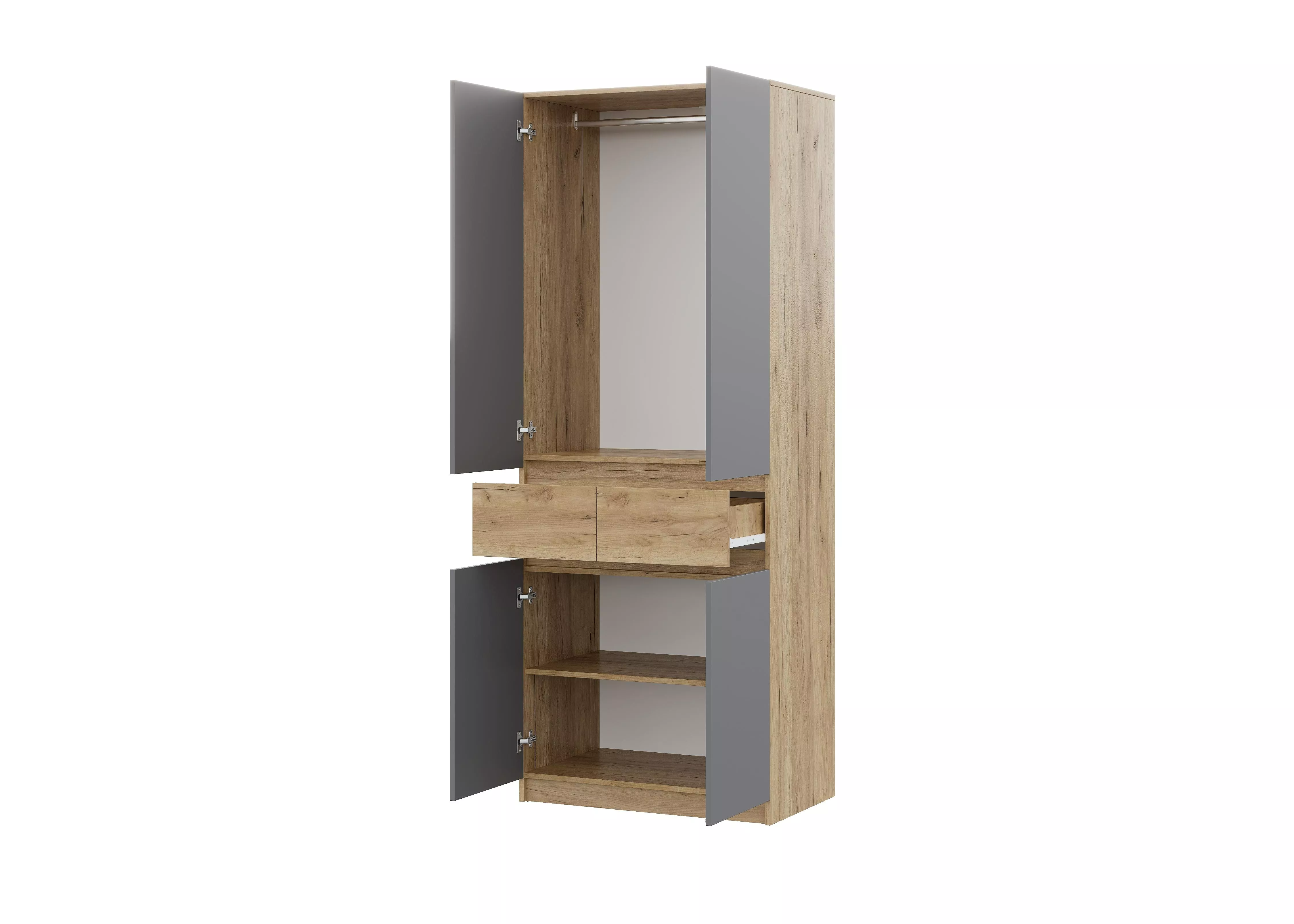- Верхняя часть: отделение со штангой для вешалок (грузоподъёмность 15 кг). Расстояние от штанги до вязки 975мм.