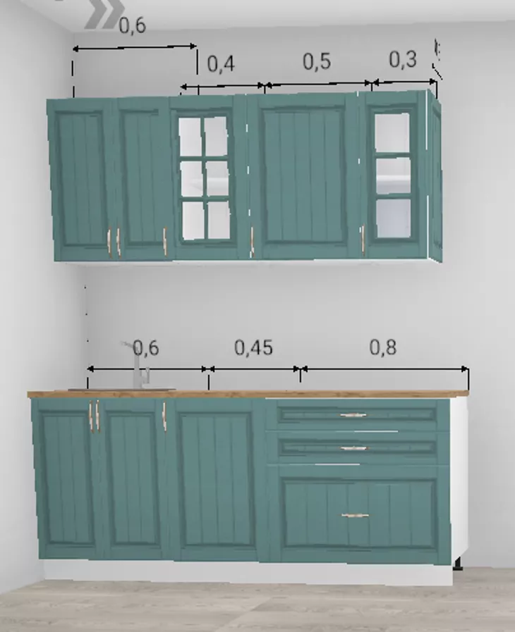 Габариты модулей низ (ШхВхГ) - 1850х815х520 мм