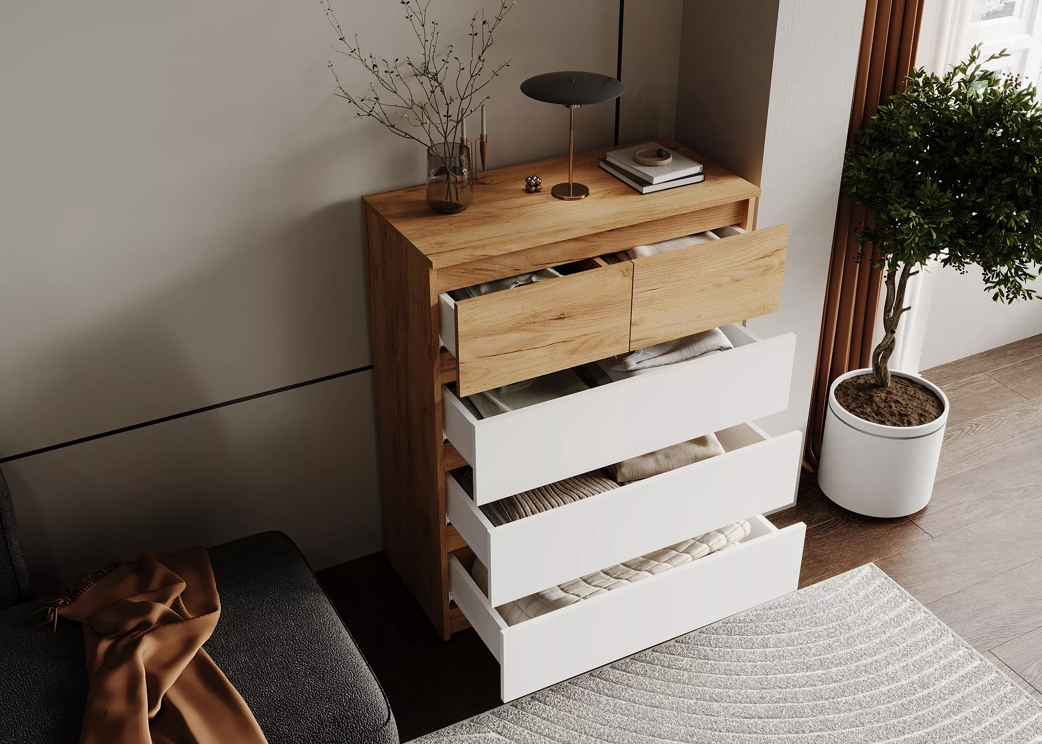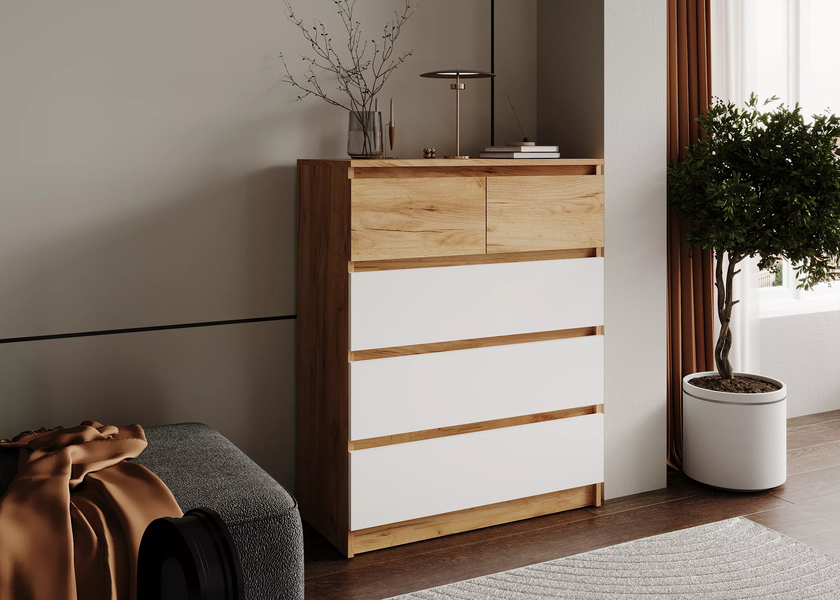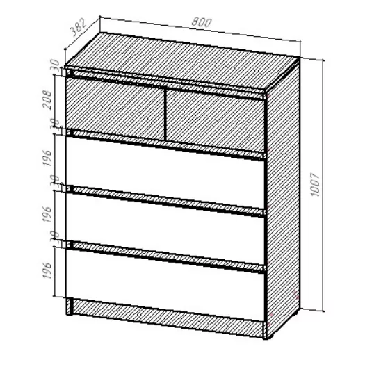 Верхний фасад ящика состоит из 2х деталей и визуально выглядит как 2 ящика.