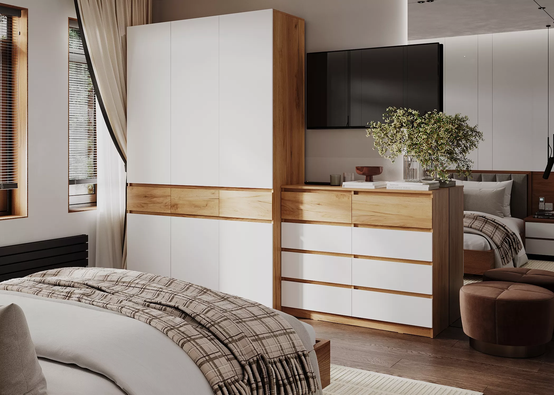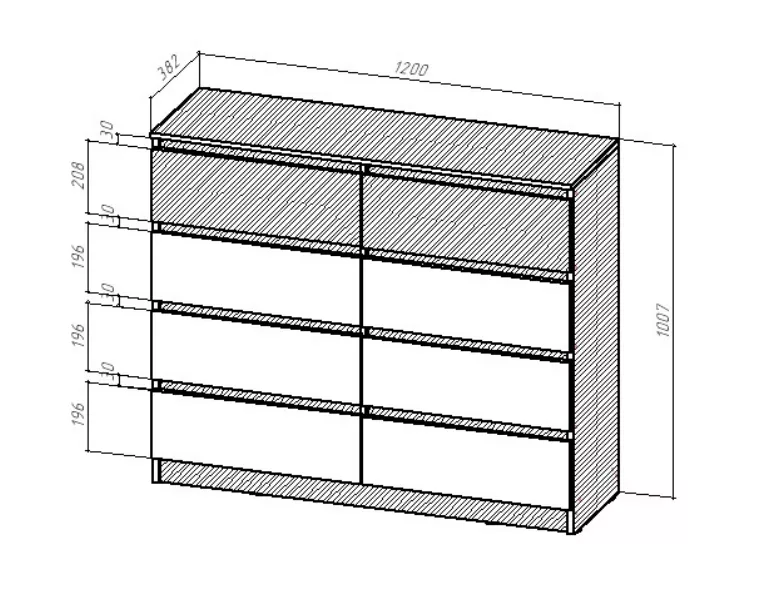 Высота верхних фасадов 208 мм, что соответствует высоте фасадов ящиков в шкафах БОСТОН ЛАЙТ.