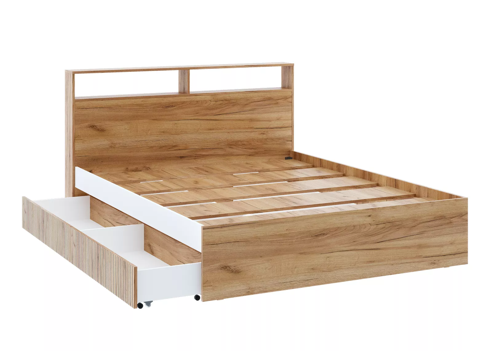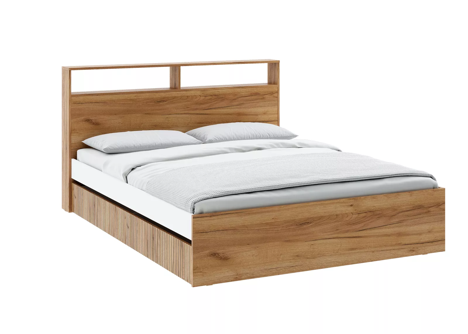 Кровать обладает УНИВЕРСАЛЬНОЙ СБОРКОЙ, поэтому ящик для белья можно расположить как с левой, так и с правой стороны.