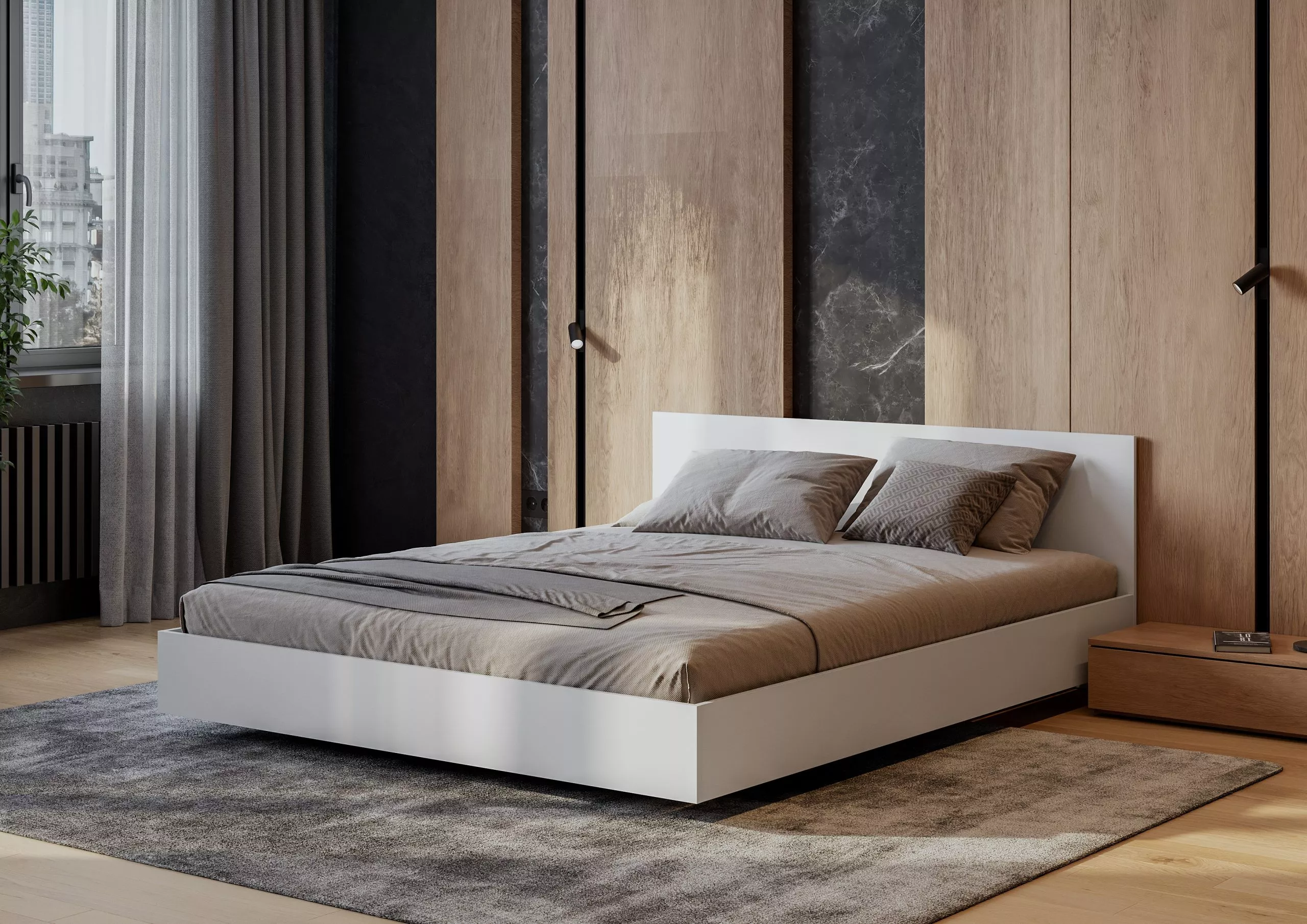 Благодаря конструкции основания кровать выглядит невесомой и словно парит в воздухе.