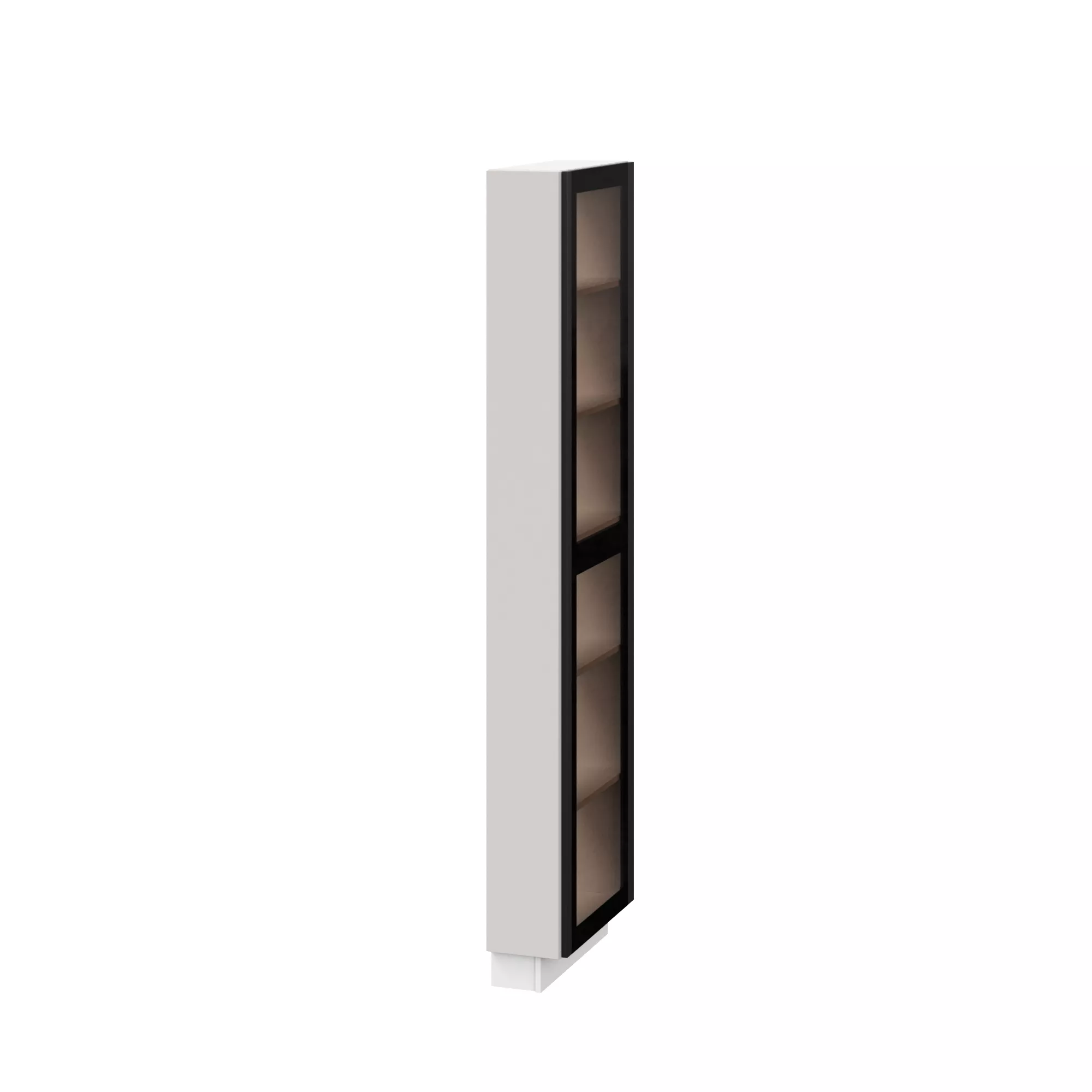 Распашной фасад изготавливается из МДФ в цвете Софт черный, стекло – тонированное