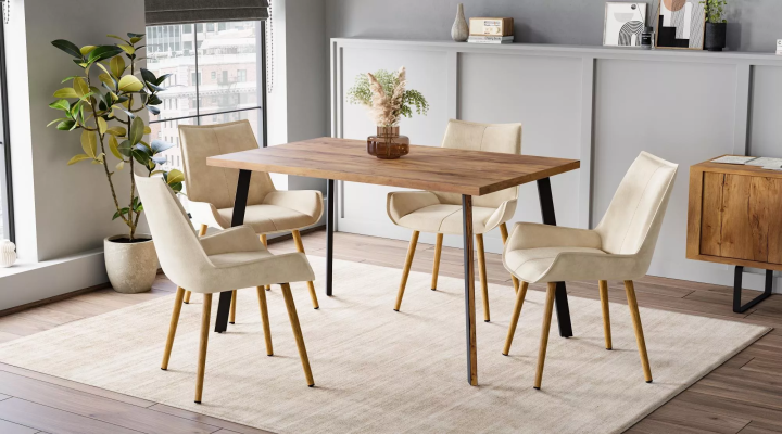 Слегка расставленные в стороны ножки стола, кроме оригинальности, добавляют удобства - у сидящих рядом будет больше свободы и комфорта.