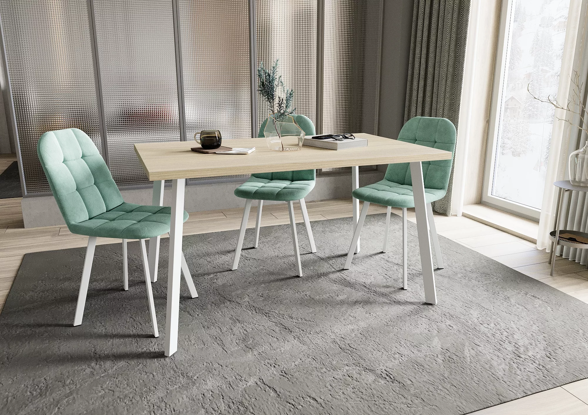 Слегка расставленные в стороны ножки стола, кроме оригинальности, добавляют удобства - у сидящих рядом будет больше свободы и комфорта.