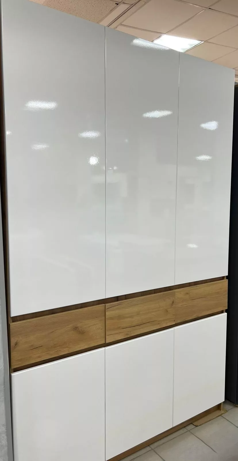 - Шкаф выполнен полностью без ручек, все его элементы открываются за фасад.
