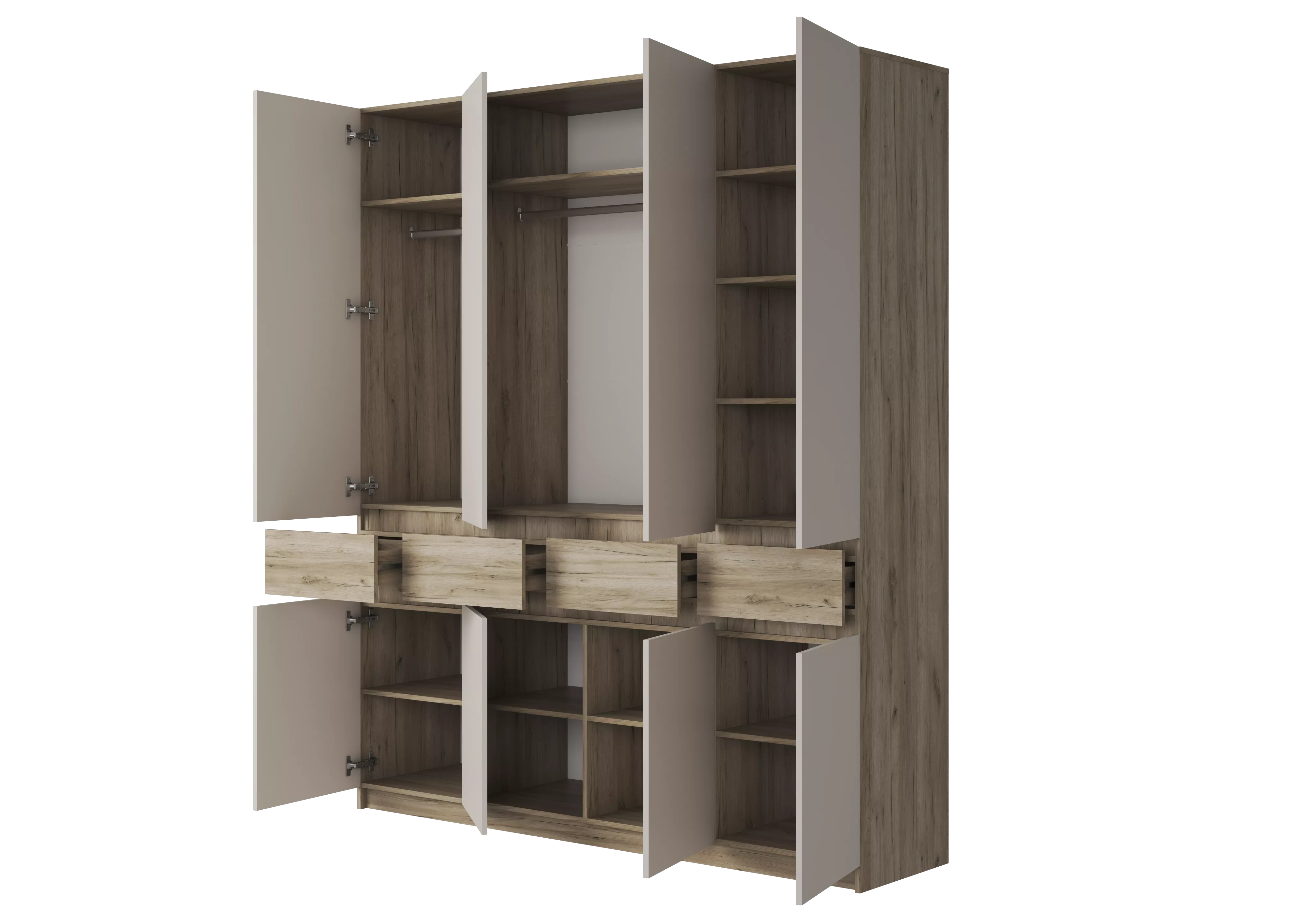 - Шкаф имеет две металлических штанги под одежду, а так же множество вместительных полок.