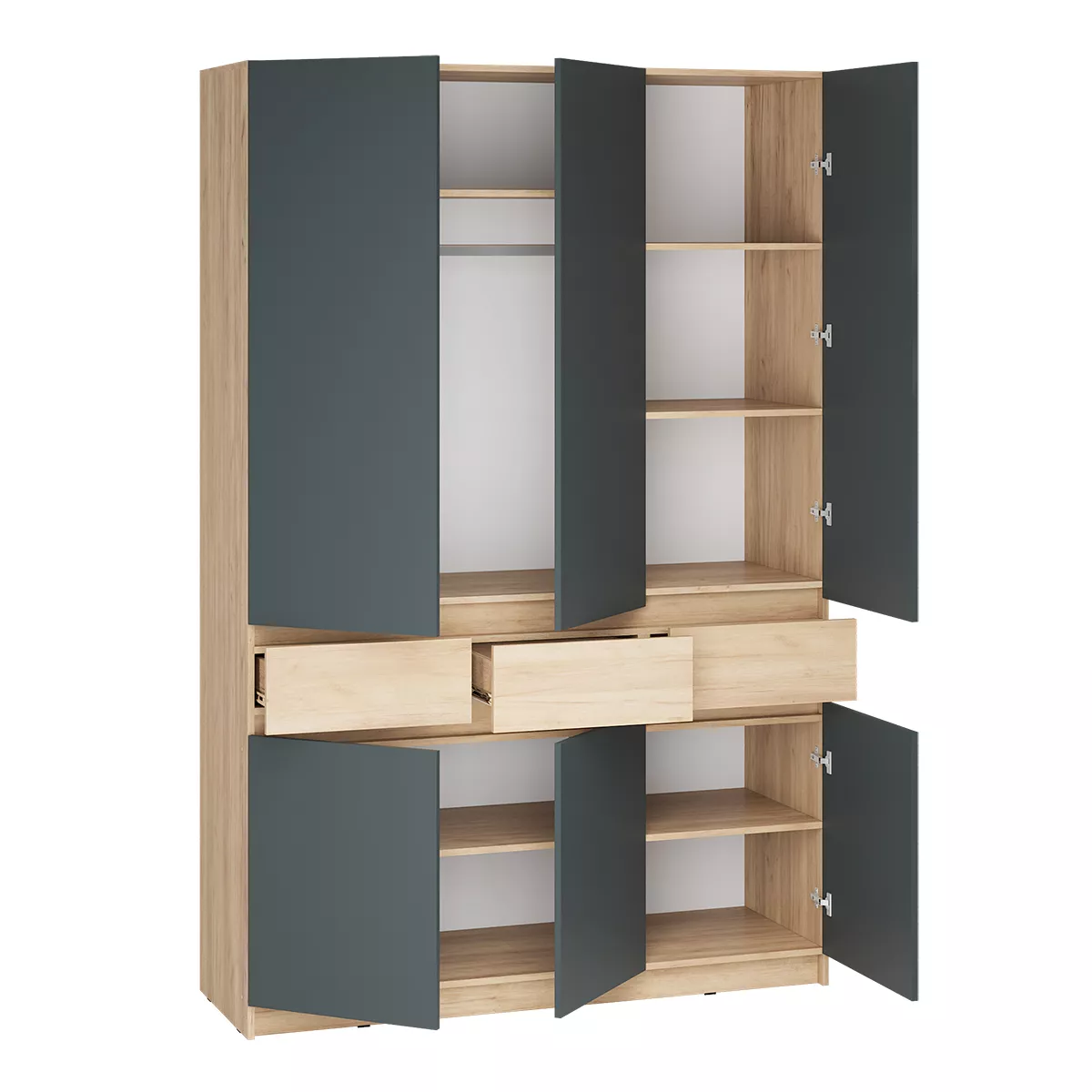 Наполнение: штанга горизонтальная, полки, ящики.