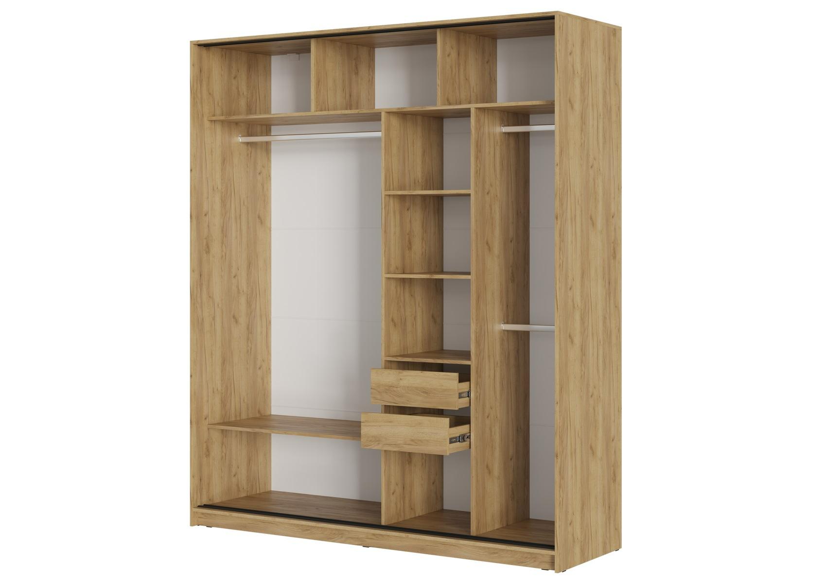 - В центральной части, габаритом Ш.456 х В.1890 х Г.522 мм, расположены 3 несъёмные полки и 2 ящика. Между полками расстояния 362 мм. Под ящиками ниша высотой 378 мм. Механизм ящиков – шариковые направляющие полного выдвижения, длиной 450 мм. Фасад ящика Ш.450 х В.160 мм.