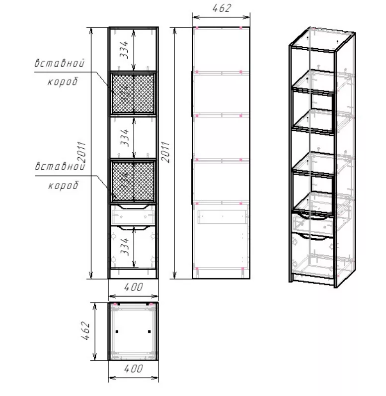 !Для предотвращения опрокидывания крупных элементов мебели их необходимо прикрепить к стене. В комплект для сборки мебели не входят крепежные средства для крепления к стене. Вам необходимо приобрести их самостоятельно в специализированных магазинах. Не забывайте о том, что для различных материалов стен необходимо использовать разные крепежные элементы.