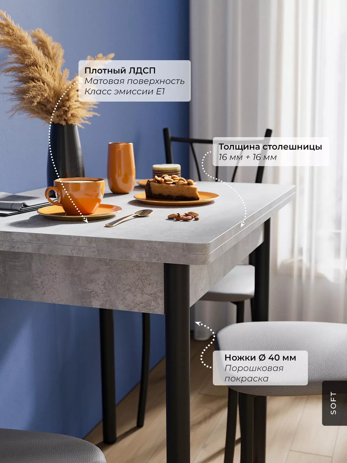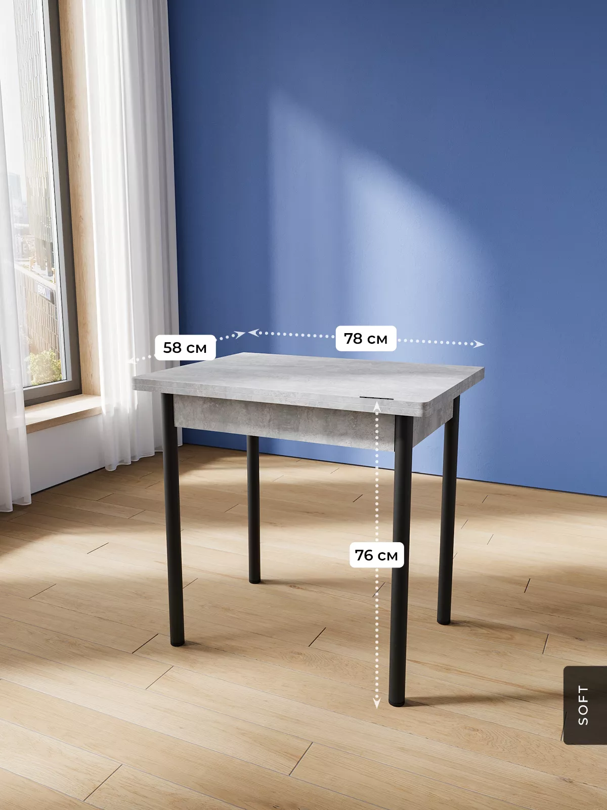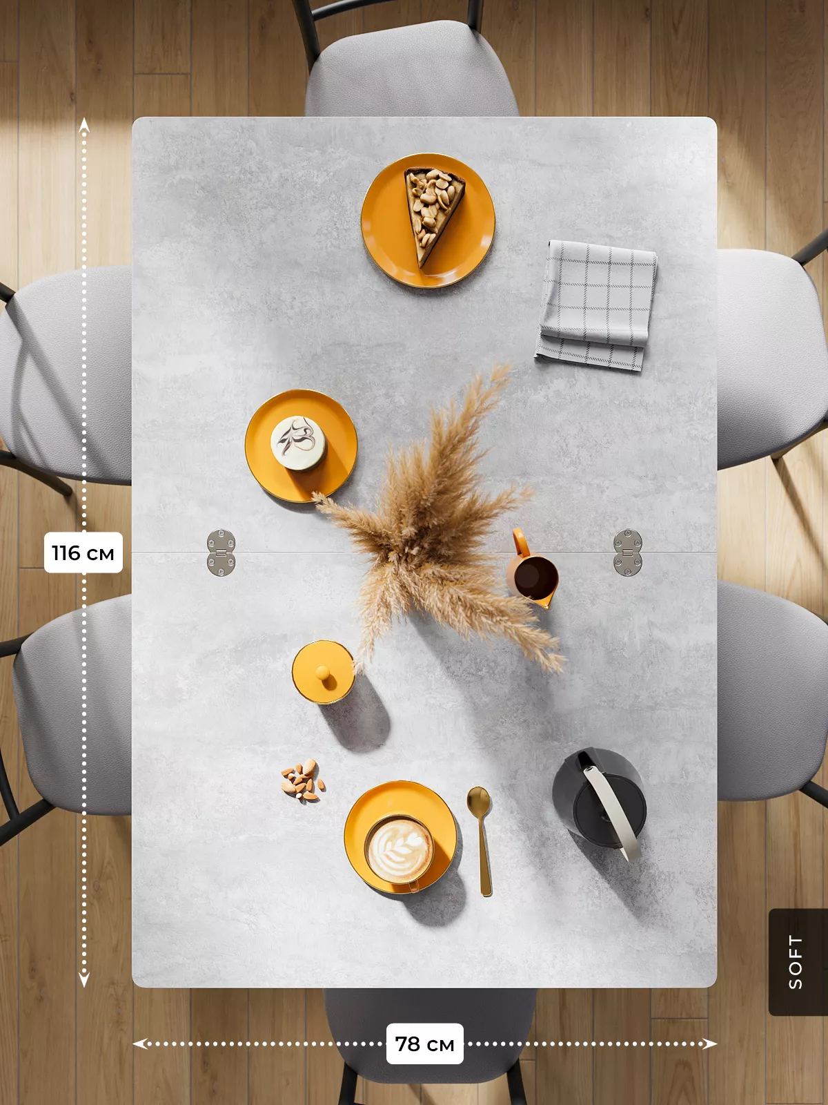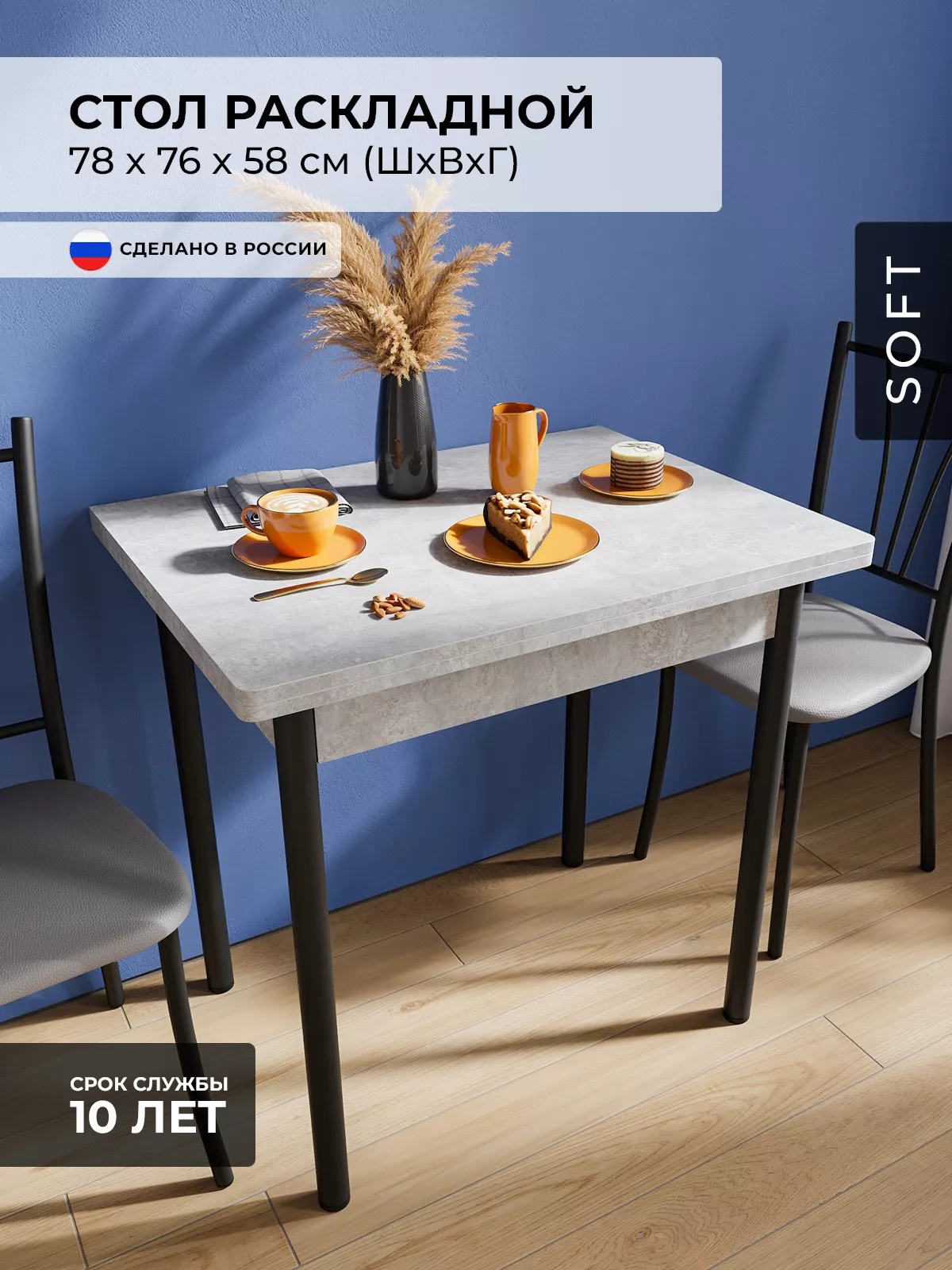 Конструкция стола поворотно - раскладная, что позволяет использовать стол, как в сложенном, так и в разложенном виде.