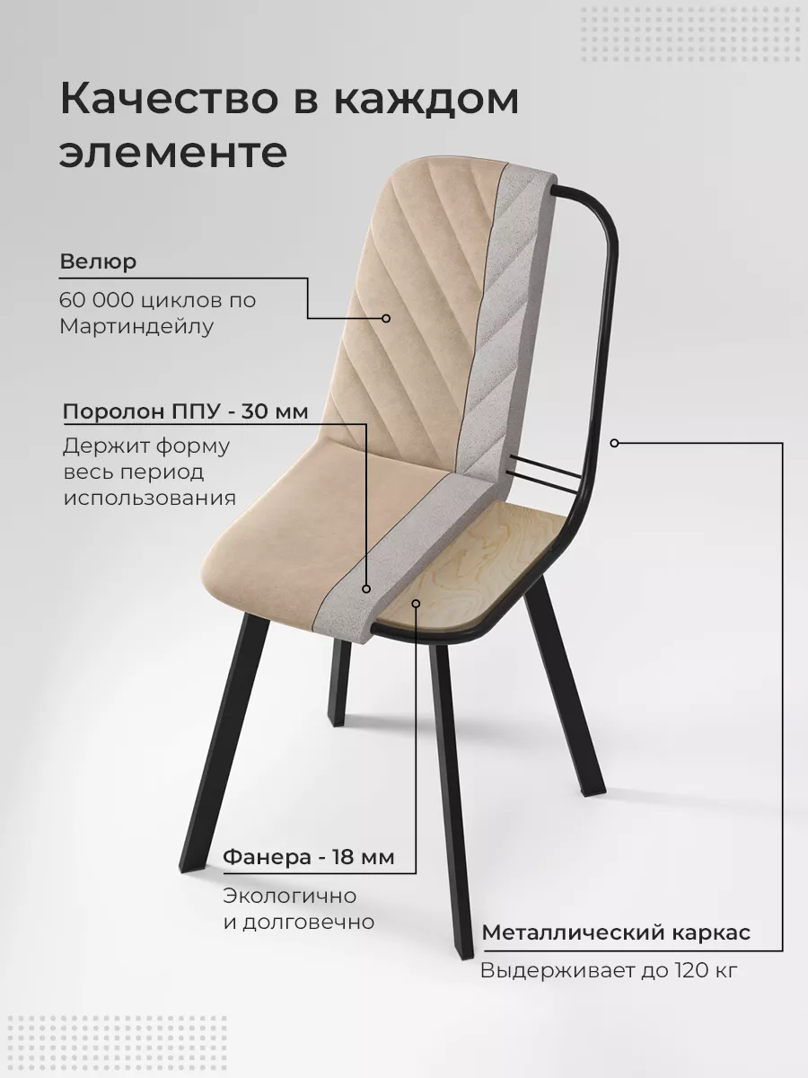 Элементы стула: металлический каркас, фанера, поролон.