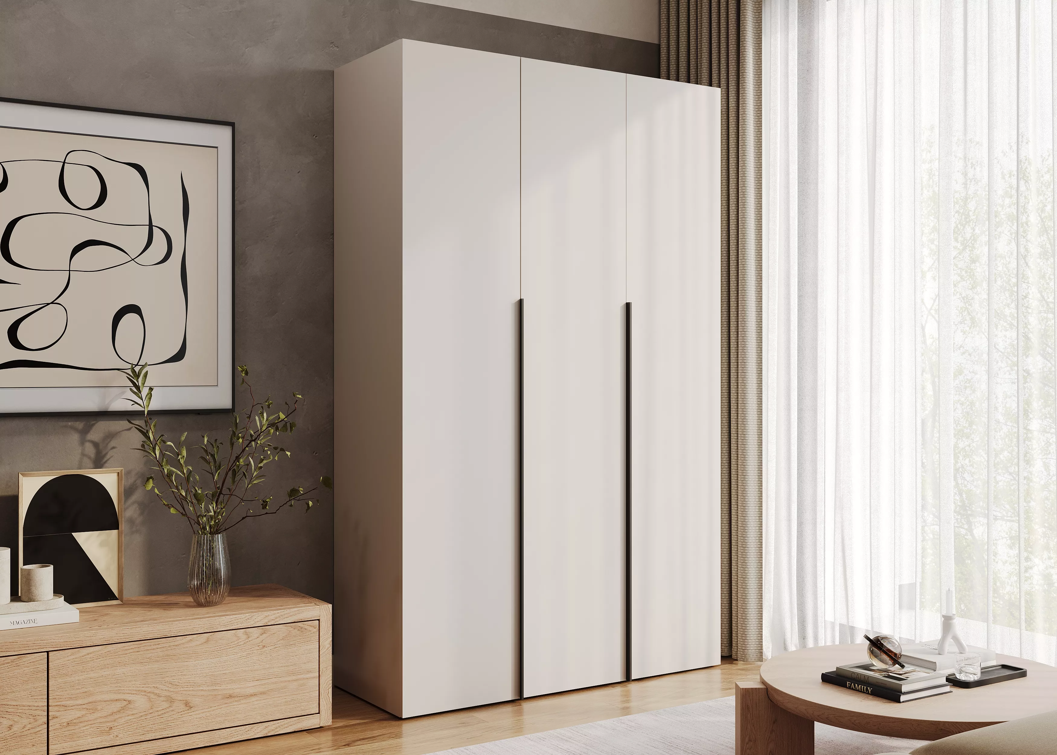 Современный дизайн: Левая и правая створки имеют ручку – цвет чёрный, материал – пластик, центральная створка – без ручки. Цвет «Кашемир» отлично впишется в любую интерьерную гамму.