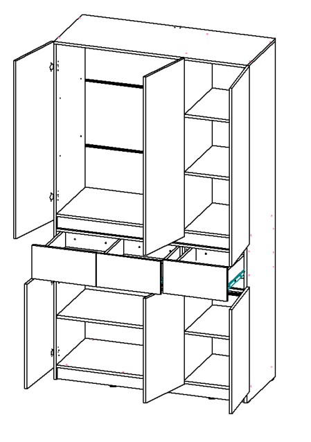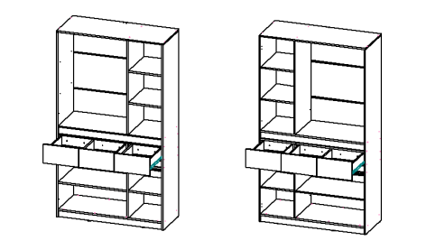 Чтобы обеспечить равномерную нагрузку на поверхности, тяжелые предметы внутри шкафов следует размещать по всей площади полок.