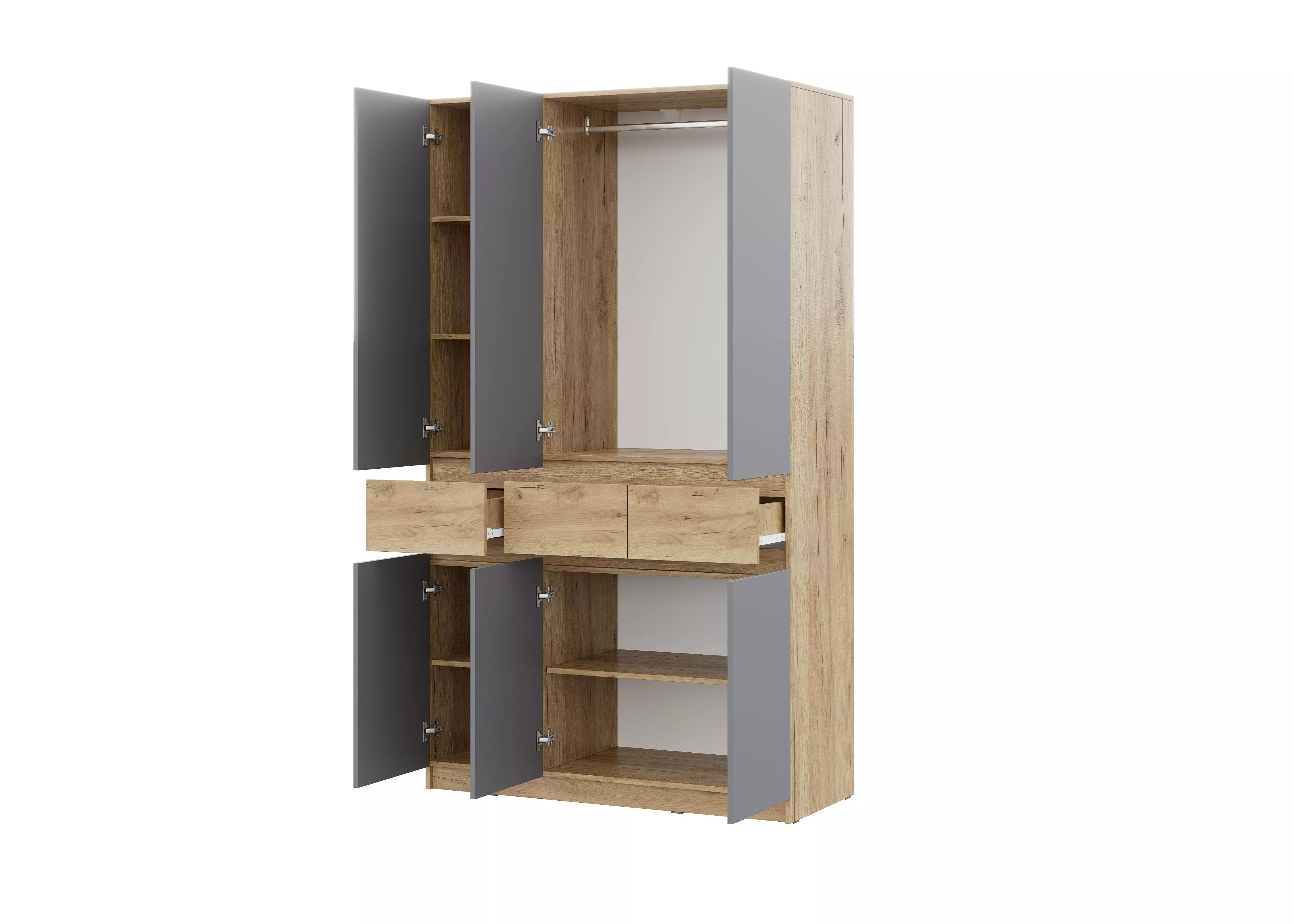 - Секция с 2 съёмными полками (3 ниши 376 × 341 × 490 мм).