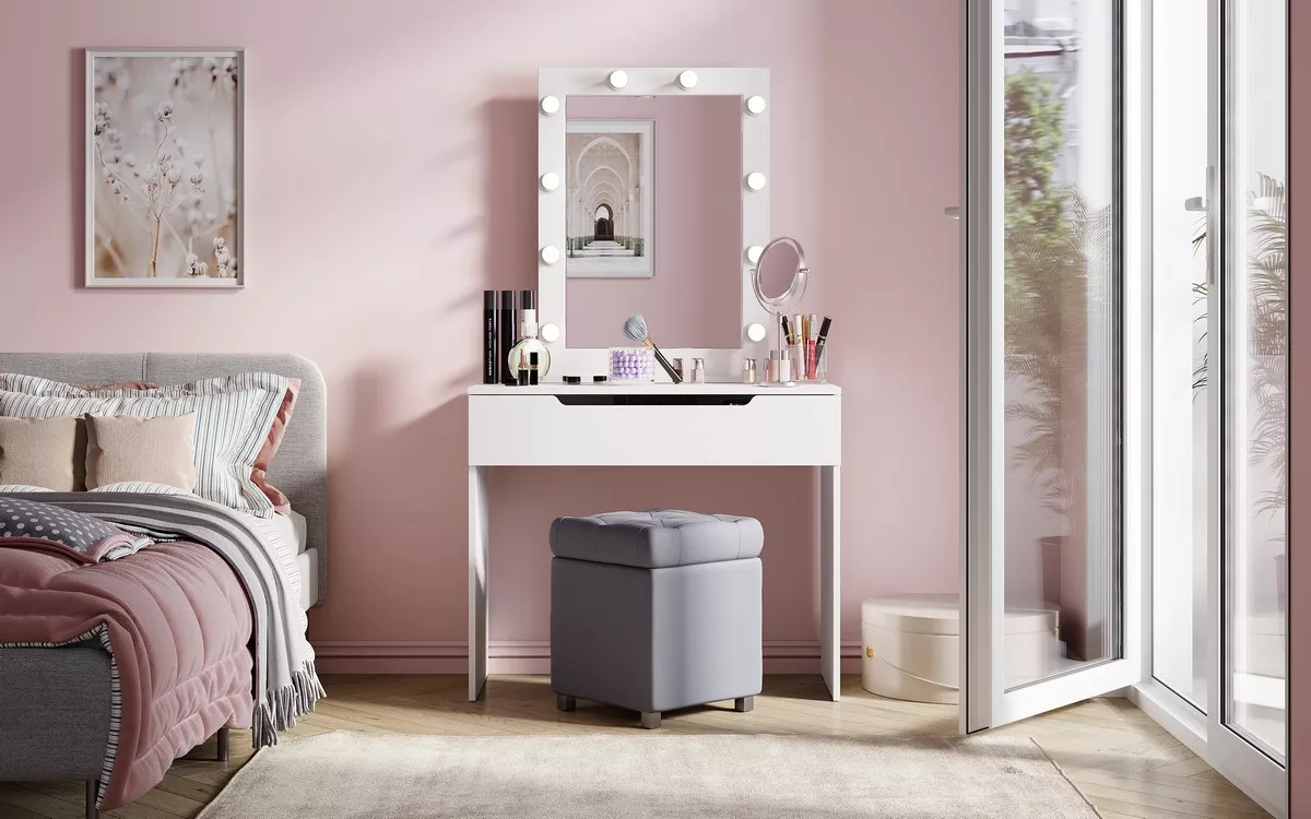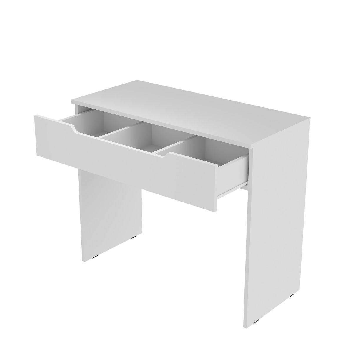 Под столешницей спрятан выдвижной ящик на роликовых направляющих с тремя секциями для хранения.