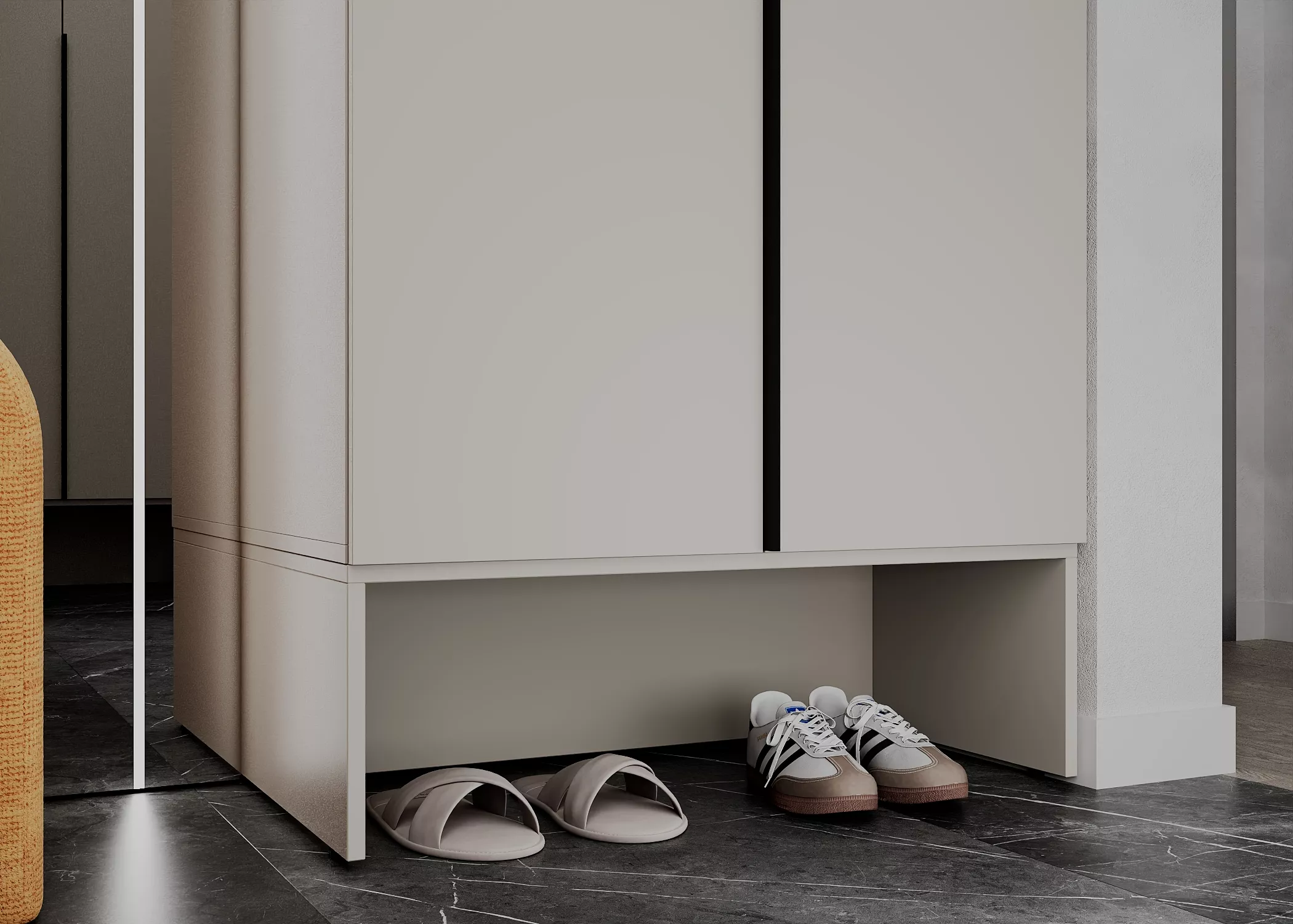 Установите шкаф на тумбу — и вы получите высоту 2190 мм, что делает его более вместительным и эргономичным. Это решение позволяет эффективно использовать вертикальное пространство комнаты. А с дополнительными антресолями шкаф может достичь рекордных 2640 мм до потолка, экономя пространство и используя высоту помещения по максимуму.
