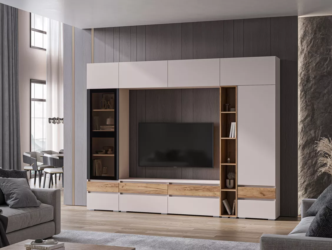 !Для предотвращения опрокидывания крупных элементов мебели их необходимо прикрепить к стене. В комплект для сборки мебели не входят крепежные средства для крепления к стене. Вам необходимо приобрести их самостоятельно в специализированных магазинах. Не забывайте о том, что для различных материалов стен необходимо использовать разные крепежные элементы.