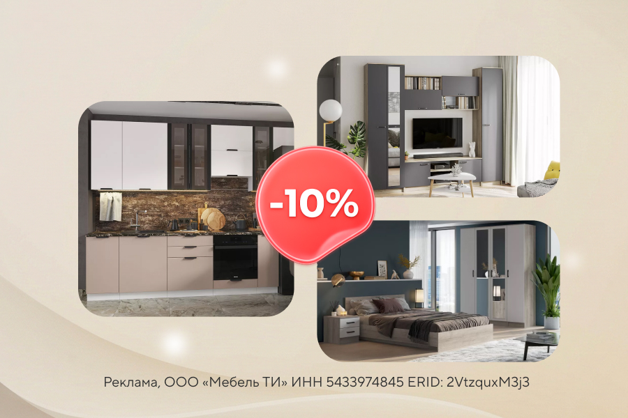 Выбирайте мебель для дома и оформляйте заказ с выгодой — на время акции действует скидка 10% на весь ассортимент фабрики «Интерьер Центр». Отличный повод обновить интерьер и приобрести нужные позиции по сниженной цене.