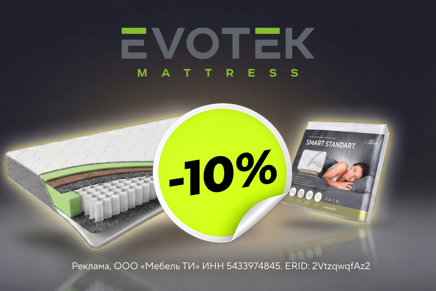 Позаботьтесь о качестве своего сна вместе с брендом EVOTEK. В рамках акции действует скидка 10% на матрасы и чехлы — отличная возможность обновить спальное место и повысить уровень комфорта.